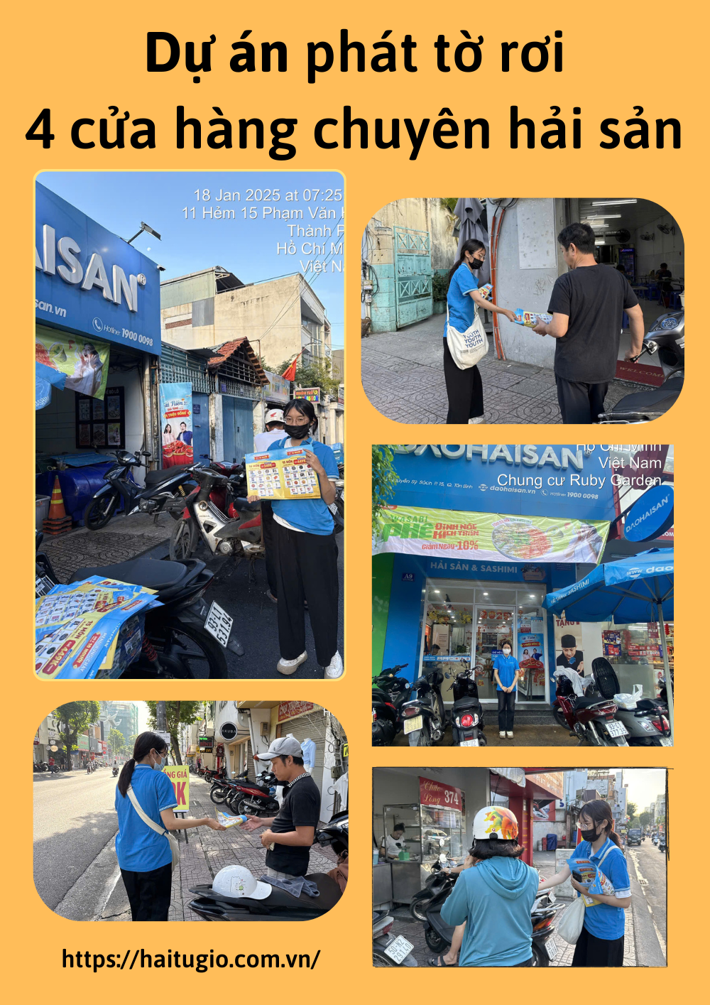 (1) Phát tờ rơi, (2) Thiết kế in ấn, (3) Tổ chức sự kiện, (4) Quà tặng doanh nghiệp, (5) Sản phẩm – Thiết bị hỗ trợ quảng cáo.