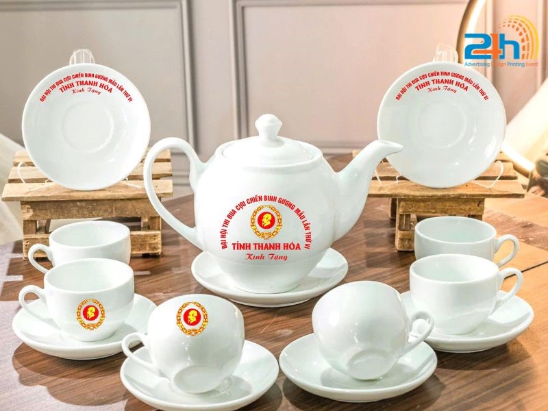Dịch vụ in logo bộ ấm trà chuyên nghiệp đáp ứng tính thẩm mỹ cao