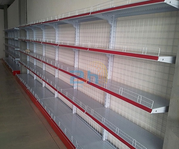 Kệ siêu thị lưng lưới thép có thể mở rộng không gian cửa hàng theo một cách trực quan. Trong khi đó, tâm lưng tole đục lỗ mang lại cho siêu thị cảm giác sang trọng, cao cấp hơn.