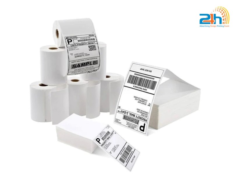Giấy in nhiệt còn được sử dụng để in tem nhãn mã vạch, đặc biệt trong lĩnh vực bán lẻ, kho vận, logistics. Nhãn in nhiệt được dùng để dán lên sản phẩm nhằm quản lý hàng hóa, theo dõi tồn kho hoặc vận chuyển hàng hóa hiệu quả hơn.