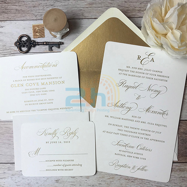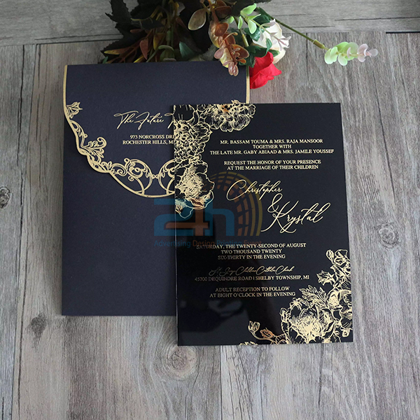 Kỹ thuật khắc và dập nổi cao cấp tăng thêm vẻ sang trọng cho thiệp mời đám cưới của bạn. Sự khác biệt là với bản ép kim – ép nhũ tạo dấu ấn riêng cho mẫu thiết kế của bạn. Nó mang lại một hiệu ứng quyến rũ nhất định.