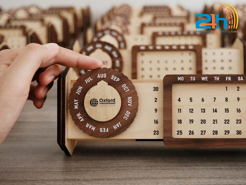 - Quà tặng doanh nghiệp: Lịch gỗ là lựa chọn quà tặng doanh nghiệp phổ biến nhờ khả năng cá nhân hóa, như khắc logo, tên công ty hay thông điệp riêng. Đây là món quà vừa ý nghĩa, vừa sử dụng được lâu dài, giúp ghi dấu ấn với đối tác, khách hàng.
