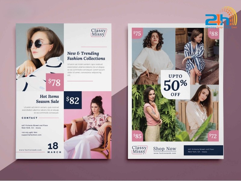 Được yêu thích bởi sự hiện đại, tinh gọn – mẫu tờ rơi này có ít chữ, nhiều khoảng trắng, ảnh minh họa chiếm phần lớn diện tích. Thích hợp với các startup, thương hiệu boutique hoặc các cửa hàng định hình phong cách riêng biệt.