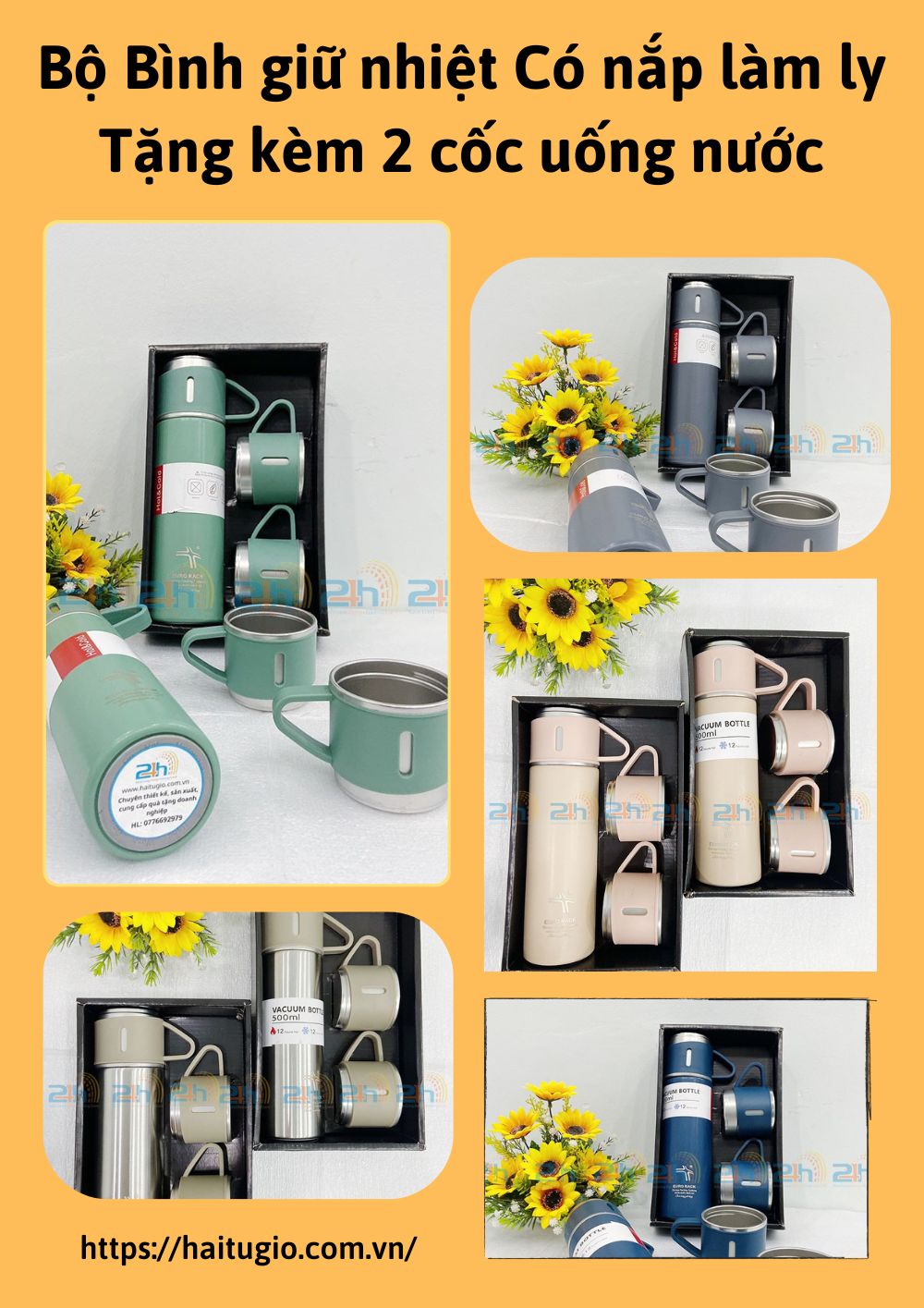 Bộ bình giữ nhiệt kèm ly haitugio đa dạng màu sắc để lựa chọn