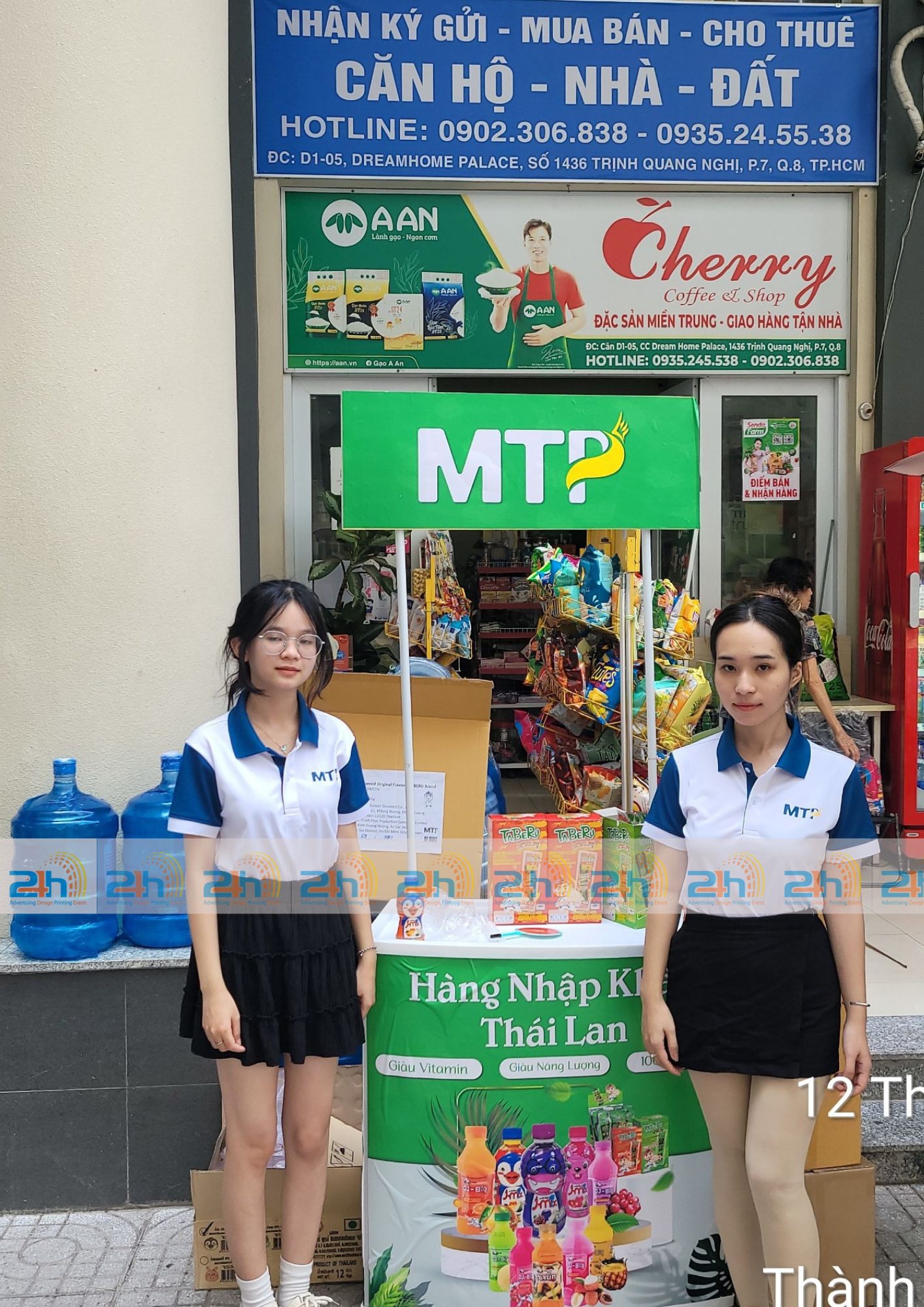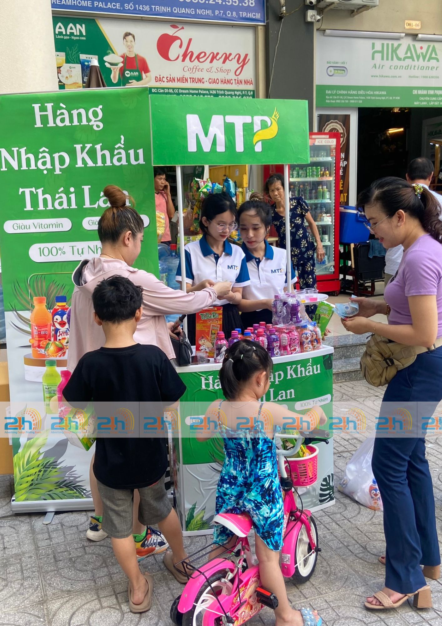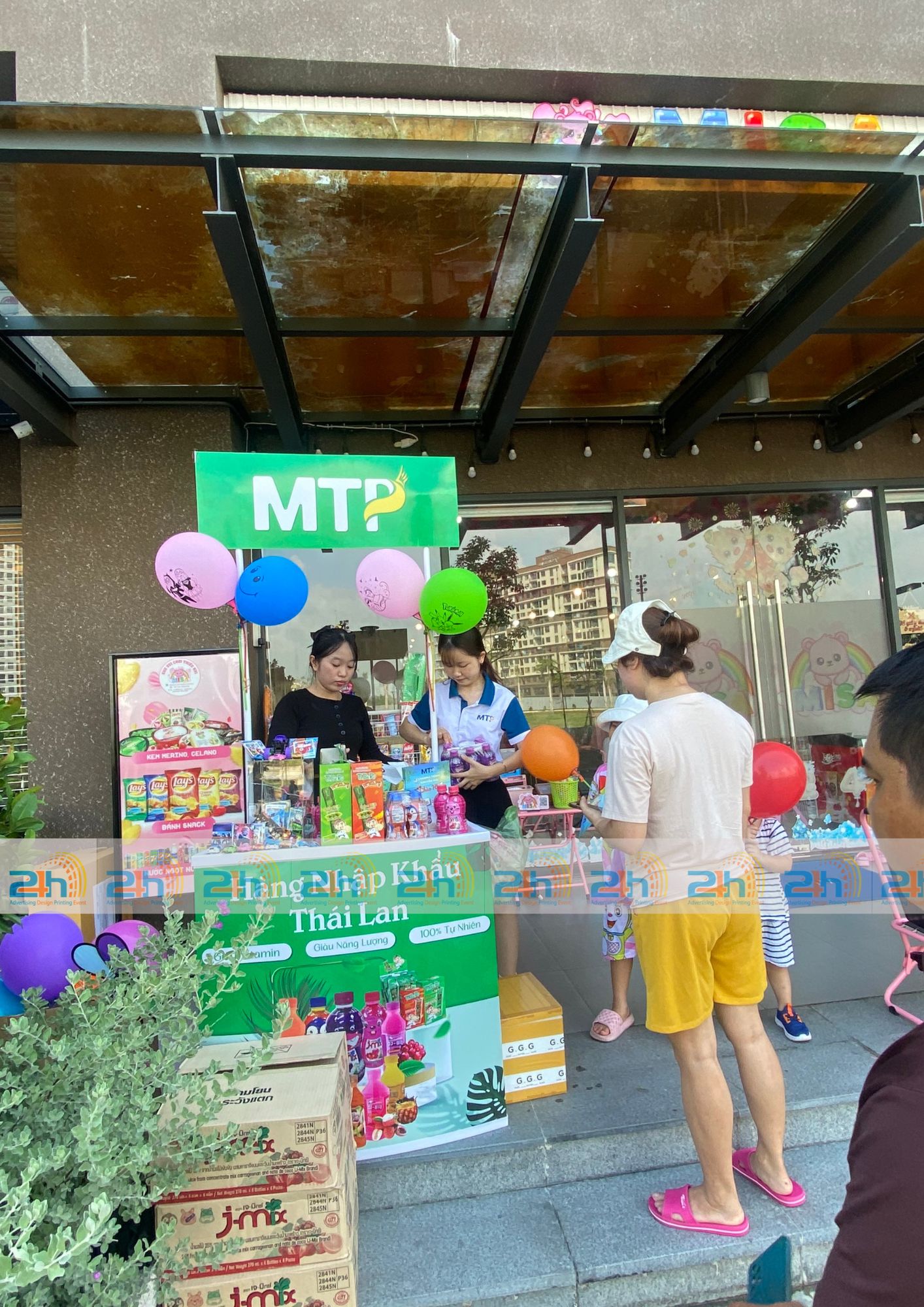 Vừa qua Haitugio đã thực hiện dự án sampling nước thạch trái cây dành cho trẻ em tại nhiều điểm trong TP.HCM. Booth sampling, standee và tờ rơi của sản phẩm cũng được Haitugio cung cấp. Mỗi điểm sampling được bố trí 2 bạn PG, các bạn PG sẽ rót sản phẩm ra ly và mời các bé dùng thử.