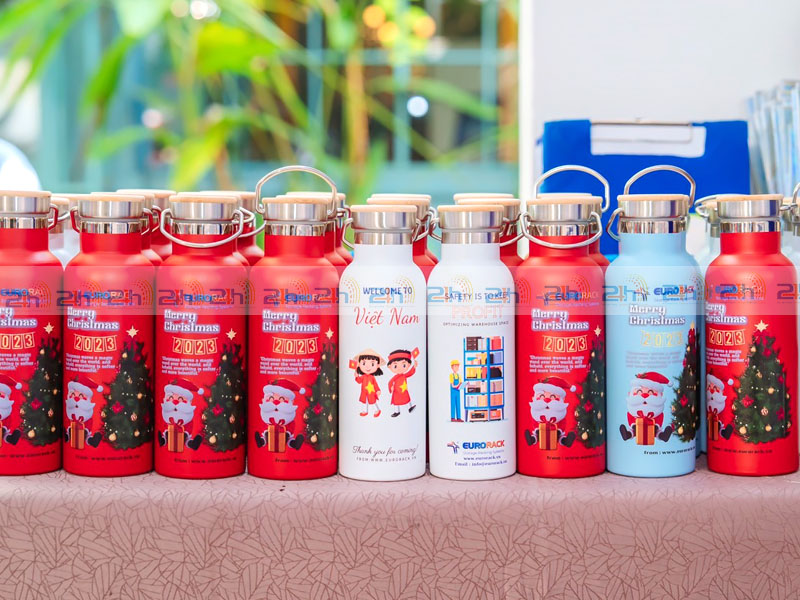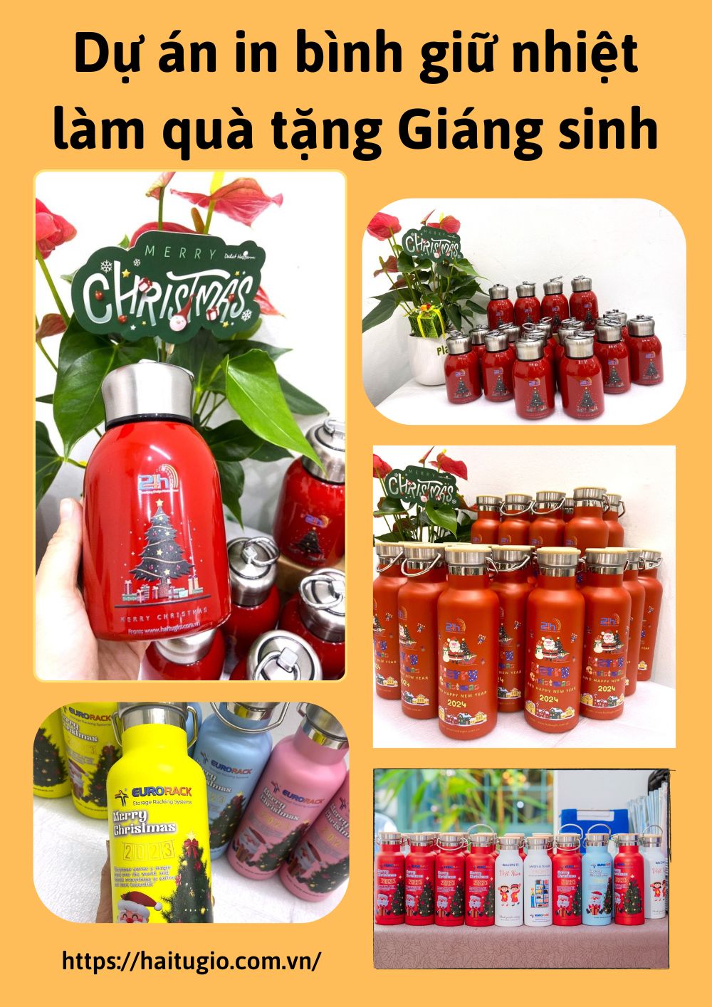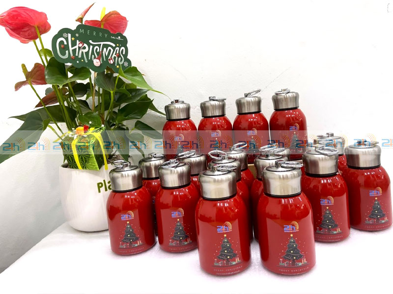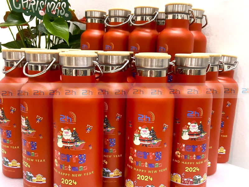 Dự án in bình giữ nhiệt làm quà tặng Giáng sinh Hai Tư Giờ thực thi