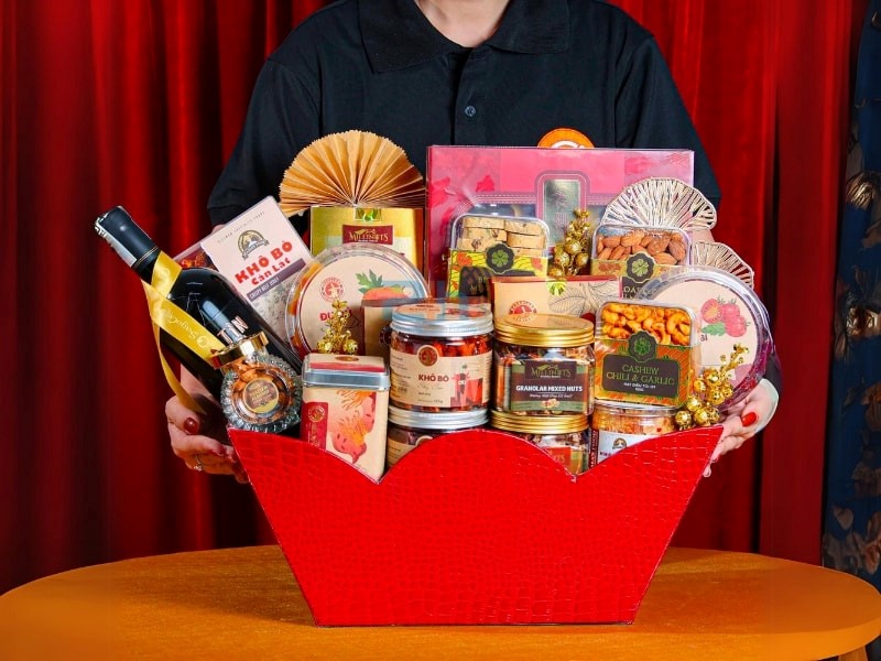 Giỏ quà và hộp quà Tết luôn giữ vị trí “top” trong danh sách quà tặng mỗi dịp đầu năm. Xu hướng năm 2025 thiên về thiết kế tinh tế, phối hợp giữa đặc sản vùng miền, bánh kẹo nhập khẩu, trà thảo mộc, rượu vang, mứt hoa quả… tạo nên tổng thể đẳng cấp, chỉn chu và sang trọng. Đây là món quà truyền thống nhưng chưa bao giờ lỗi thời, thể hiện sự chu đáo và cầu kỳ trong từng chi tiết. Rất phù hợp để biếu Tết, tặng doanh nghiệp hoặc gửi đến khách hàng VIP.