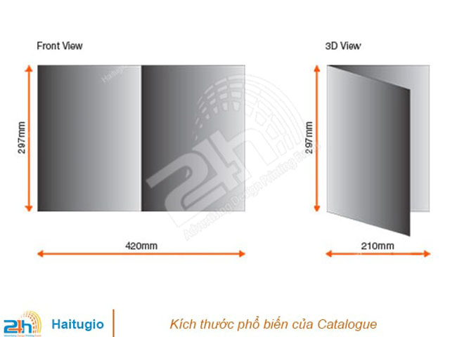 Kích thước in Catalogue cỡ A4 dọc tiêu chuẩn 20.5 x 29.7cm. Riêng khổ A4 ngang, quy cách nhỏ hơn 20 x 29.5cm. Về cơ bản, giá thành của hai loại này không có sự khác biệt. Tuy nhiên cần lưu ý lựa chọn phù hợp với yêu cầu thực tế sản phẩm.