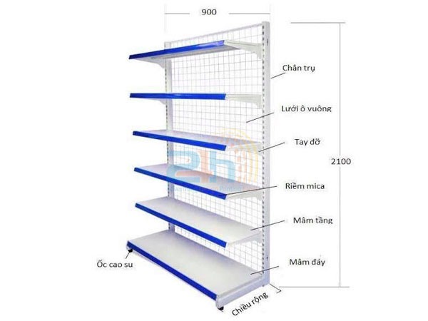 Dưới đây là đặc điểm cấu tạo kệ siêu thị chi tiết: