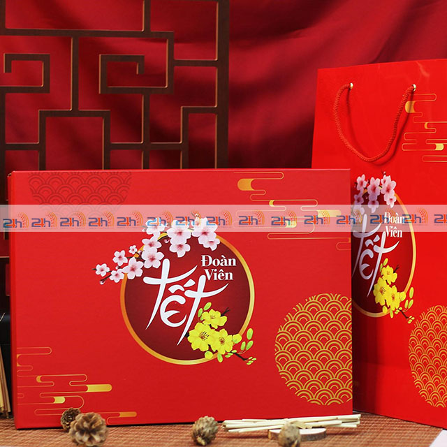 Hộp quà tết sản xuất với số lượng lớn có in hình ảnh, logo giúp doanh nghiệp đưa hình ảnh thương hiệu đến gần với công chúng hơn. Sự thật đã chứng minh được sức lan tỏa của việc quảng cáo bằng hình thức này.