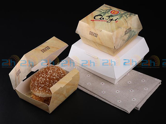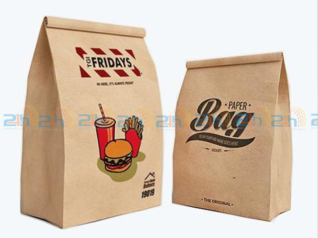 Hamburger là món ăn khoái khẩu không chỉ của các bạn nhỏ mà cả người lớn cũng vậy. Đặc điểm của món này khi ăn là rất dễ rơi rớt nếu không biết cách cầm cũng như cách cắn. Túi giấy đựng hamburger đặt biệt chú trọng vào việc thiết kế đáy chắc chắn. Chất liệu giấy thấm hút dầu mỡ tốt và ngăn chất lỏng của thức ăn bám dính vào tay. Loại giấy làm túi đựng được sử dụng phải đảm bảo an toàn cho người tiêu dùng kể cả khi bị thấm ướt bởi nước sốt.